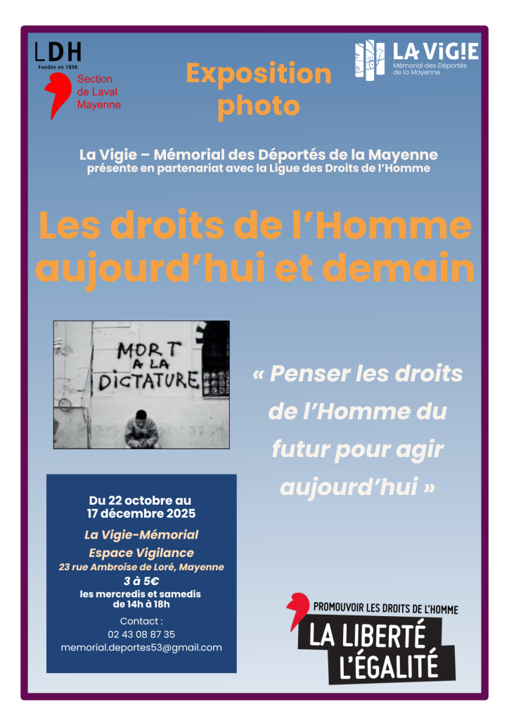 Cette exposition est visible dans l’Espace Vigilance de la Vigie-Mémorial des Déportés du 22 octobre 2025 au 17 décembre 2025, les mercredis et samedis.
